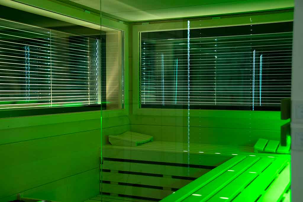 Ein entspannendes Saunabad erhält durch Licht- und Farbspiele eine ganz besondere Wirkung.